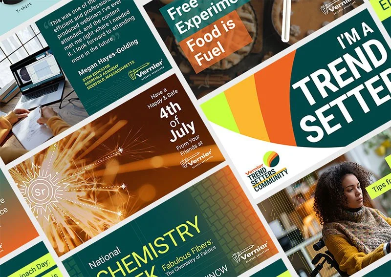 Digital graphics, ads, and social assets designed to reinforce Vernier’s brand and make complex science tools approachable and engaging across platforms.