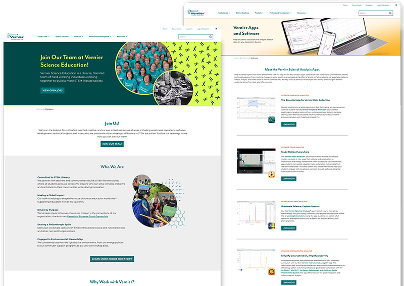 From Careers to Software, these core pages were designed to introduce Vernier to the world. Each layout balanced storytelling, usability, and visual clarity to reflect the company’s values and inspire trust.