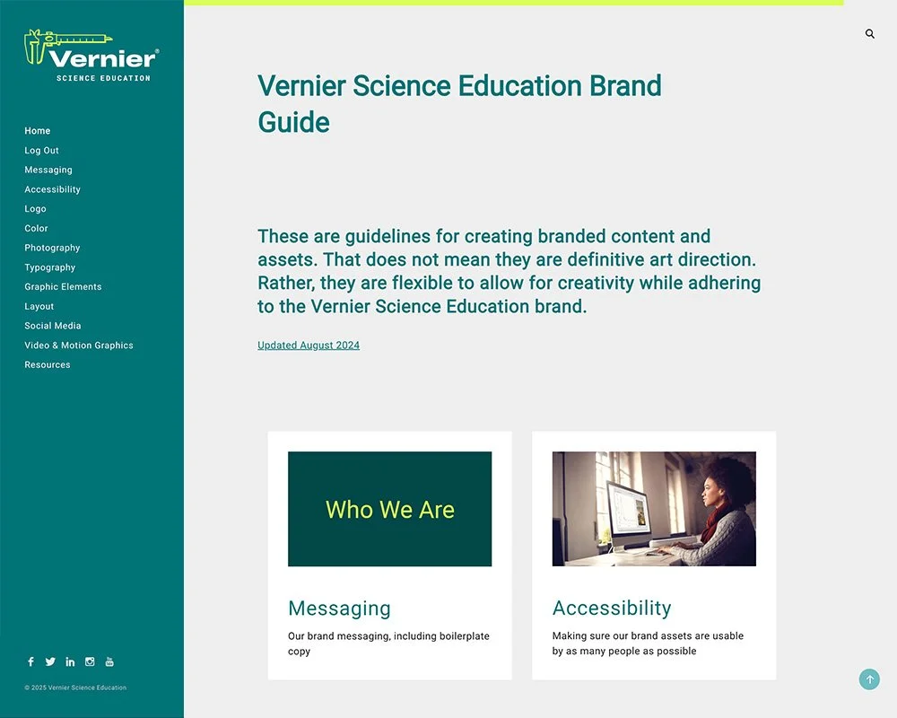 Collaborated and developed Vernier’s Online Brand Guide, turning detailed standards into an easy, practical system.