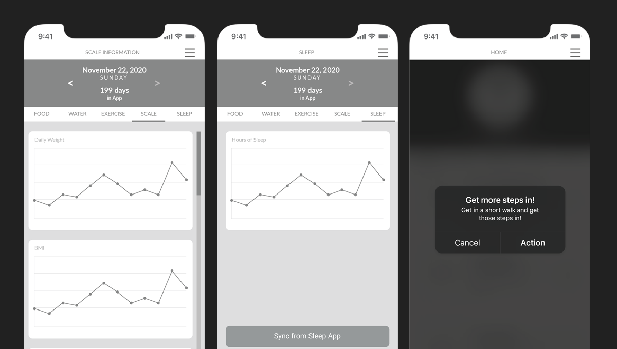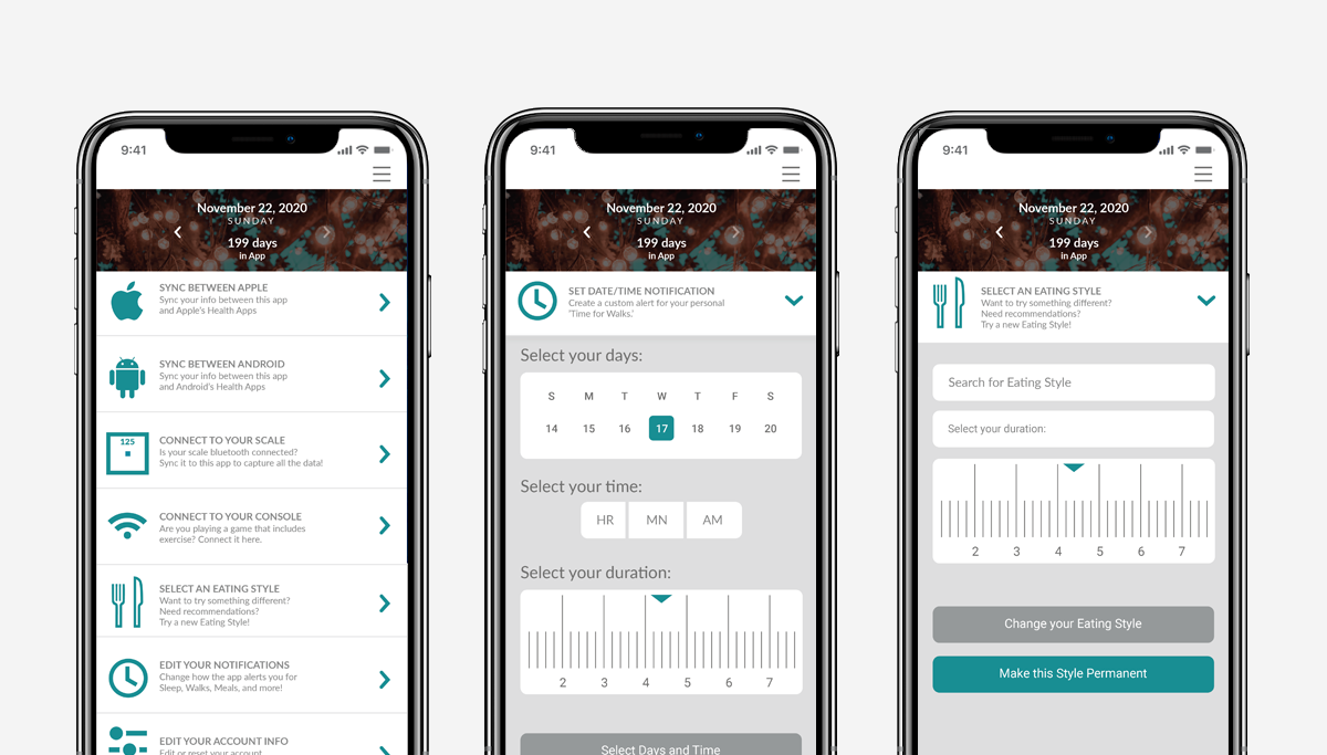 I identified opportunities to consolidate data from multiple sources, personalize notifications and feedback, and allow flexible goal management to support a variety of health journeys.