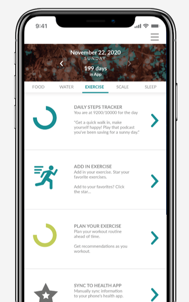 By combining a clear visual structure with interactive feedback, this feature encourages consistent use and helps users maintain a holistic view of their fitness and health journey.