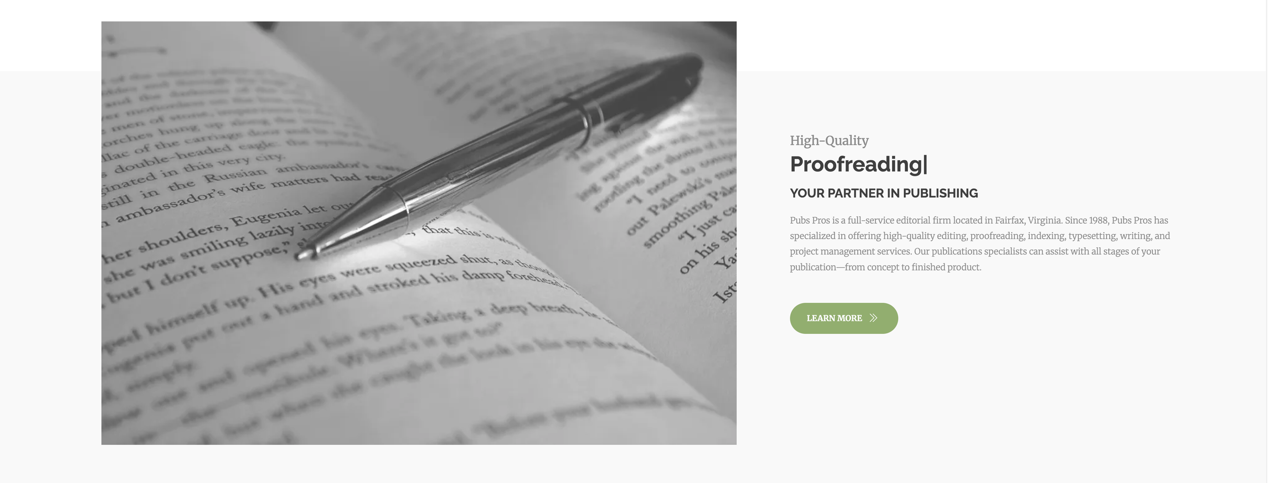 Publications Professionals LLC — known as Pubs Pros — is a veteran-owned editorial services company with a long-standing reputation for precision and professionalism. They support publishers, nonprofits, associations, and corporations with expert editing, proofreading, and production management.