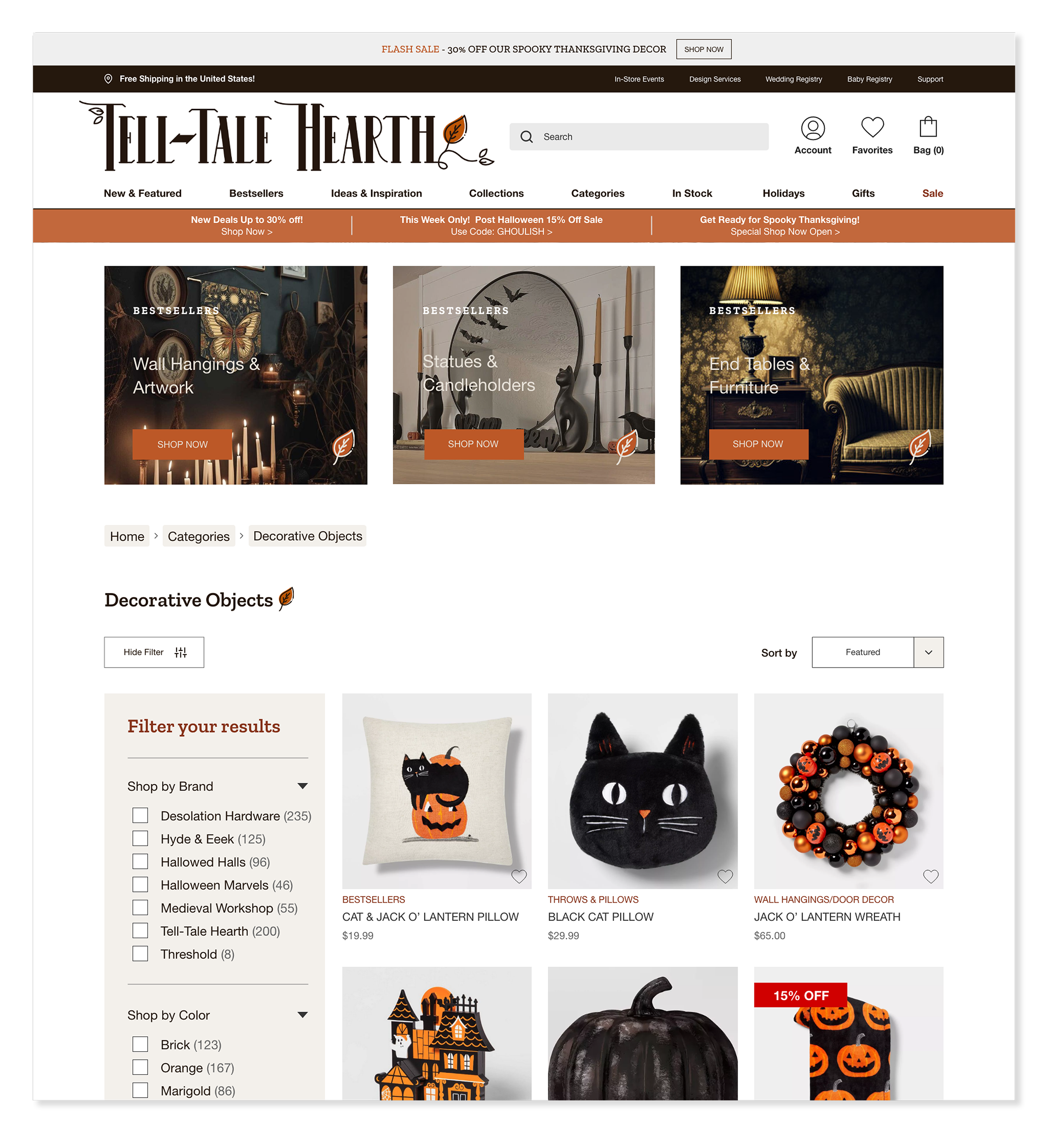 Tell-Tale Hearth had built a loyal following through its brick and mortar store in Salem, Massachusetts. The appeal came from a carefully curated collection of dark, Victorian-inspired decor and the immersive atmosphere of the space itself. Without a robust online experience, that connection was limited to those who could visit in person. The challenge was translating that sense of place into a digital environment that felt just as intentional and engaging.
